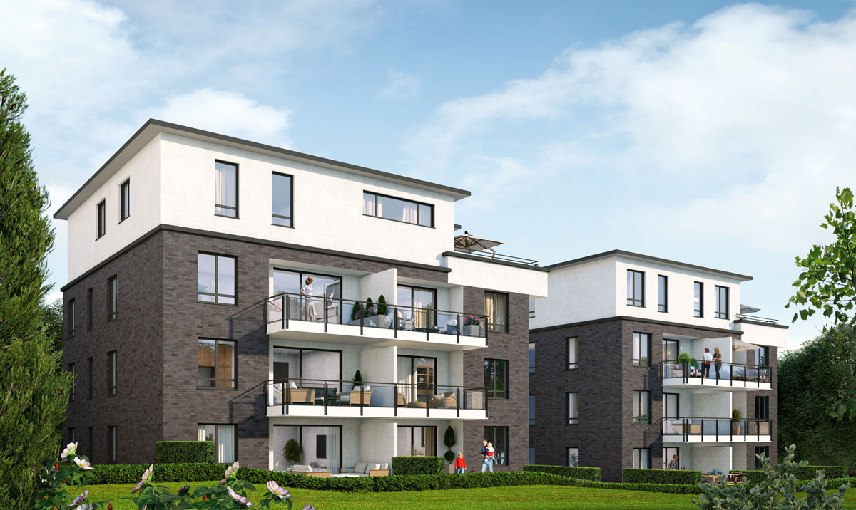 Hier trifft klare, zeitgemäße Architektur auf höchsten Wohnkomfort. Die 14 Neubau-Eigentumswohnungen im Buscher Feld lassen keine Wünsche offen.